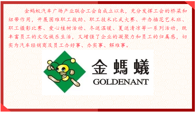 金螞蟻汽車廣場座落在美麗的威海,為大型綜合汽車商貿(mào)城,內(nèi)有汽車綜合博覽中心、40家標準4S店、貨車市場、二手車市場、汽車配件、汽車裝潢。致力于打造永不落幕的汽車博覽會。